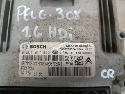 UNIDADE / CENTRALINA DO MOTOR PEUGEOT 308 1.6HDI REF. 0281017333 EDC17C10 9677013180