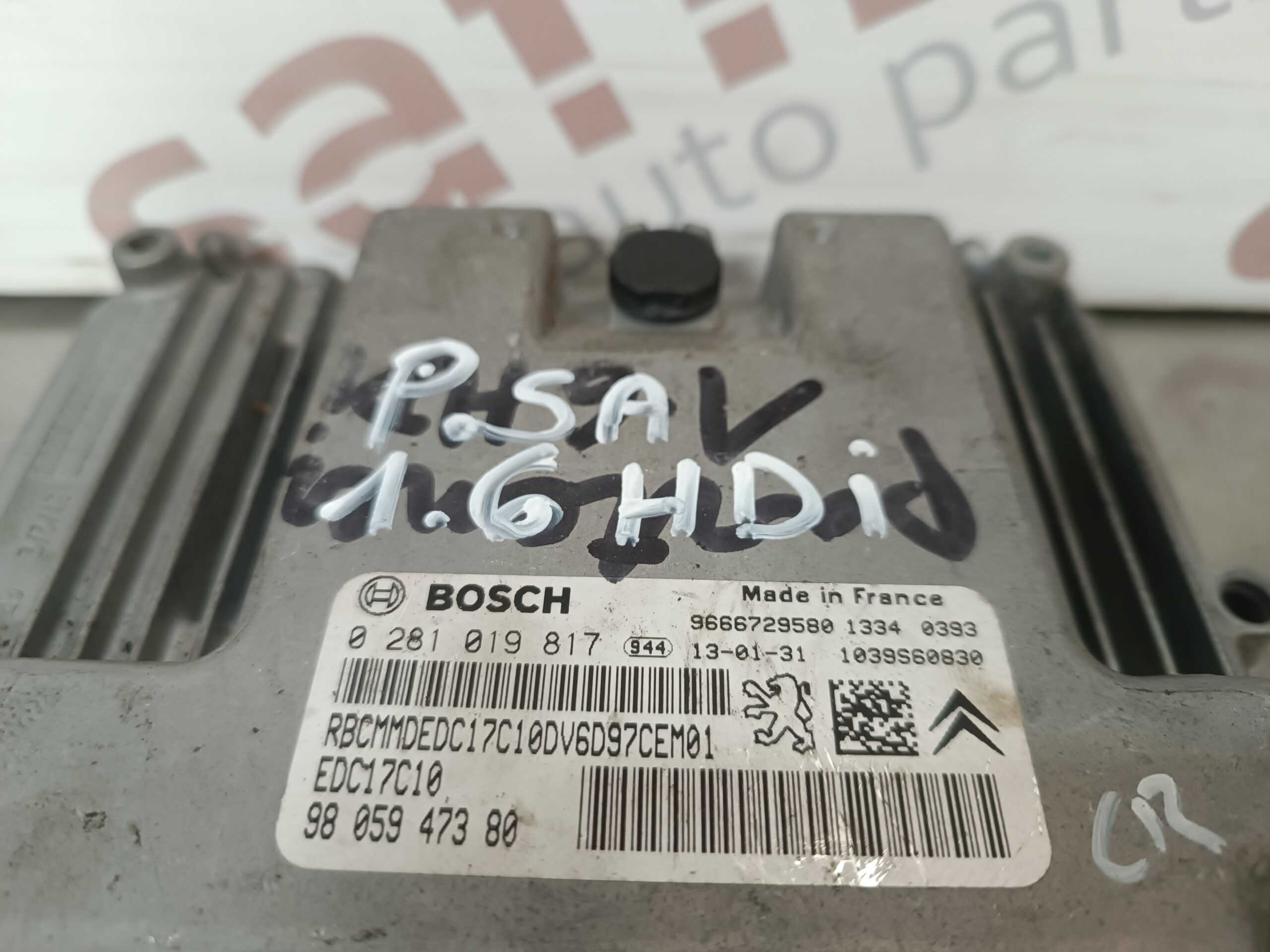 UNIDADE / CENTRALINA DO MOTOR PEUGEOT 208 / PARTNER / CITROEN BERLINGO 1.6HDI EDC17C10 9805947380 0281019817